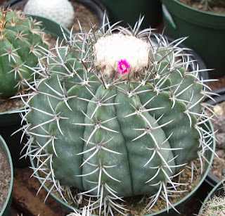 And just so that I include a specific cactus before I close off, this is Turbinicarpus polaskii blooming in May this year - in a 2" square tray. I note that my last post last year mentioned that this was one I was nurturing. Success!!