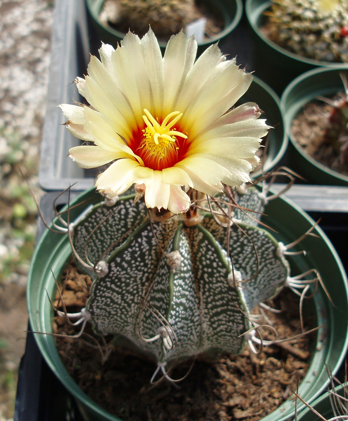 And another that has been nurtured carefully to bloom this April - Astrophytum asterias